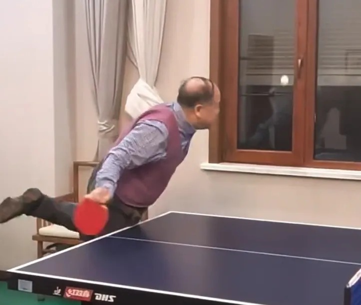 之后,他似乎找到了打球节奏,不仅球接住了,还顺利打过了网。